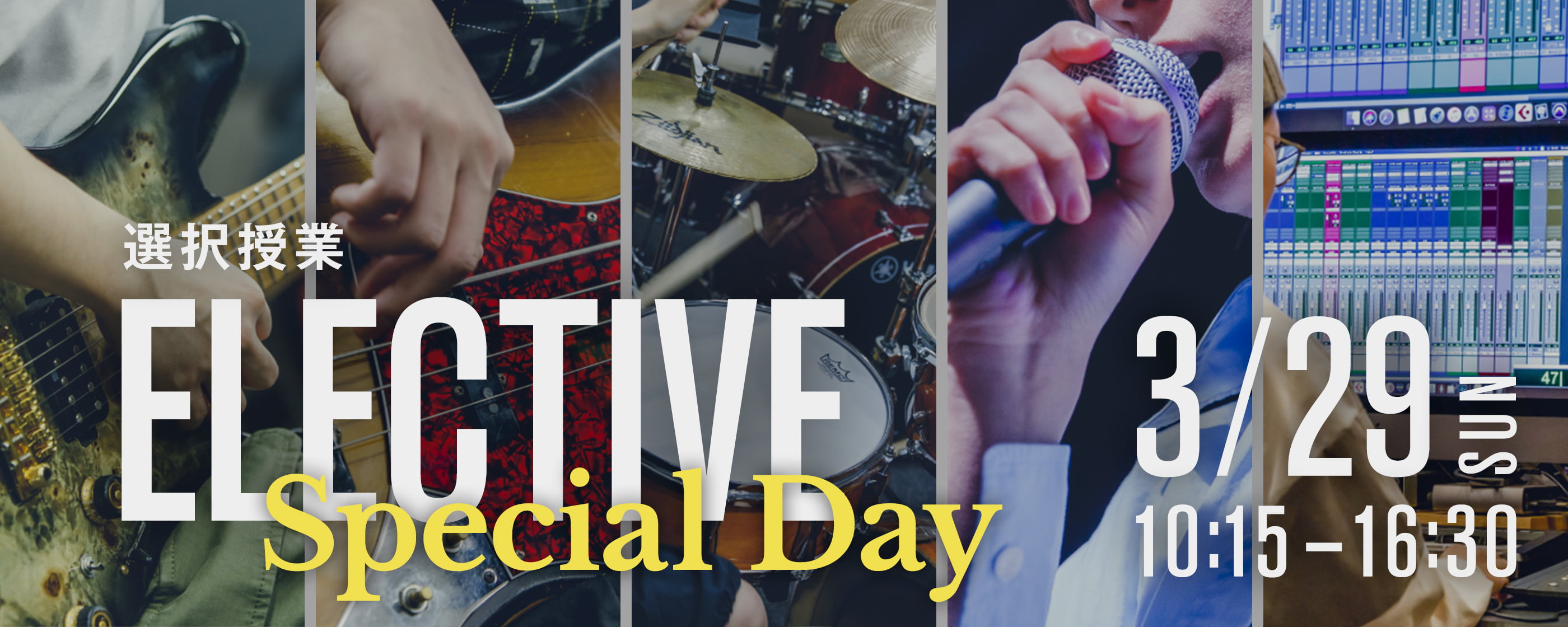 MI講師それぞれが得意とする音楽ジャンル、独自のテクニック、その講師しか教えることのできない完全オリジナルな授業を、今後の自分の音楽キャリアを見据え、選択して受講できるカリキュラムです。