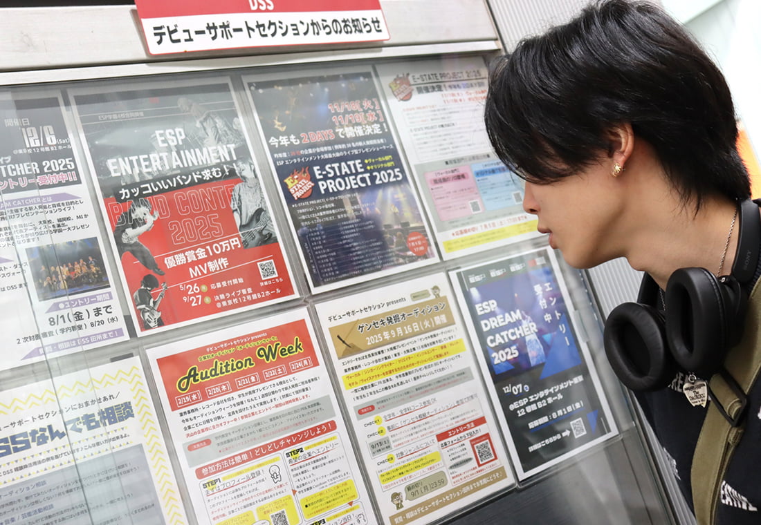 オーディション情報は常に、学内掲示板や学生専用のWEBページからチェック出来ます。一般公募されているオーディションはもちろんのこと、企業から学校に向けてダイレクトにいただく「ESP生限定」の学内案件も多数!
