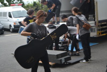 現場のローディーさんの中に、ESPの大阪校にいる矢野先生に初めて会いました。今回の研修で、矢野先生にドラムのバミリをやらせて頂きました。