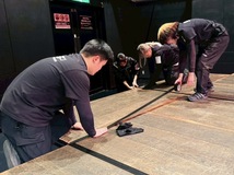今回の研修では、初めてシュート棒を使ったシュート作業を見ることができ、とても勉強になりました。学内ホールよりも高い位置でのシュートをスムーズに行っているのを見て、プロの技術の高さを改めて感じました。本番の照明もしっかり見ることができ、現場での照明の使い方や流れを学ぶ良い機会になりました。